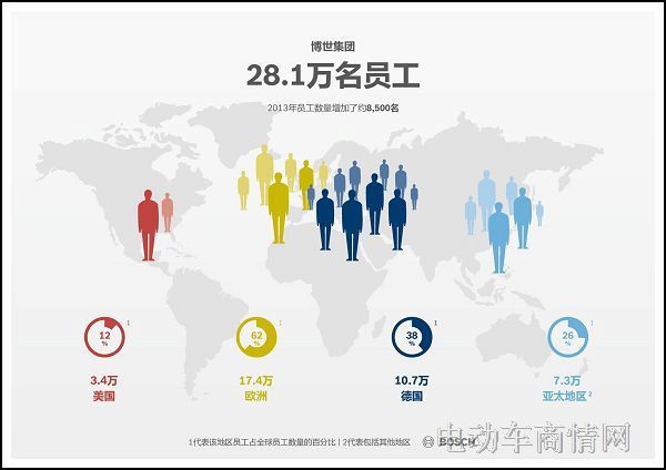 2014年,博世预计其增员需求将主要来自增长迅速的亚太地区。全球范围内,博世总共将新招约9,000名大学毕业生。在德国,博世计划聘用约800名大学毕业生。德国的新招学徒总数将维持在去年的水平,即1,400人左右。2013年,博世集团人员数量增加了约8,500名,员工总数达28.1万人(经过调整的2012年员工数字为27.3万人)。