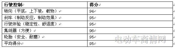 360° 控制行驶评测:满分100分,得分95分,行驶控制评测包括:转向,刹车,行驶体验,集线器,轮胎。