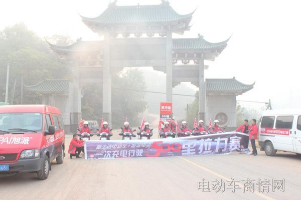 拉力赛的开跑仪式收到了广场晨练人士对的热烈反响,在一片的喝彩与鼓励掌声中,8人电动车车队,两辆LED广告车,4辆旭派电池工作车,两辆富士达跟随车以及一辆媒体工作车整装待发,非常有秩序地按事先规划的路线出发!一路上士气高涨,全程500里下来,没有一人言苦!