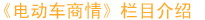 从2006年开始,《电动车商情》将强势推出市场调查栏目,该栏目将以零距离的人物采访,翔实的数据资料,客观的调查分析,真实地展现市场前沿的风云变幻,为厂商的营销决策提供最具价值的资讯参考。