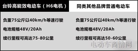 本次展会上台铃展出了最为消费者期待的“第5代台铃高能效电动车”——它具有六大特点:1、耗电少,发热小;2、效率高,不退磁;3、寿命长,不易坏;4、加速平稳,操控安全;5、省电且跑的远;6、延长电池使用寿命,更省钱。具体如何优越,让小编用以下的数据对比向你说明吧!