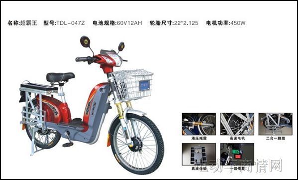 超霸王采用了22*2.125的加厚耐磨专用载重机构轮胎,加厚防氧化钢圈,耐磨耗更省电,高强度材料,为载重而生,加深的花纹沟,更延长您的使用行驶里程,更稳定更安全;特意加厚了车架管、载重后货架,凸型加强支棍,有效增强受压强度,更具韧性更稳固更耐用;加宽更软的座垫设计,让你在负重途中感受舒适稳定的骑行体验;四层防盗锁:电源锁、电池盒锁、前叉锁、电子防盗锁电机;采用金属等离子烤漆,光泽亮丽、色彩炫目,经久耐用,永不退色;前LED大灯具有很强的照明效果、射程远并且聚光效果极佳,夜行也无忧;更有安全碟刹、2合1踏板、折叠坐垫、一键修复,让超霸王在专注于载重的基础上更加全能。