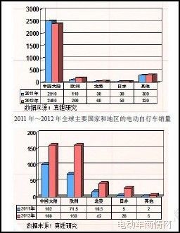 欧美地区的电动自行车基本上都是自中国(含台湾地区)进口或由中国(含台湾地区)代工的,而台湾地区企业的电动自行车的生产基地又基本上设在中国大陆;日本的电动自行车企业也多将生产基地设在中国大陆。因此,可以说,中国大陆集中了全球电动自行车90%以上的产能和产量。