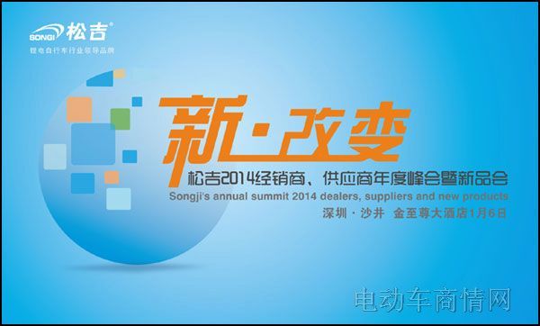 2014年1月6日,深圳市松吉电动自行车有限公司,将在深圳沙井金至尊大酒店举办“2014经销商、供应商年度峰会暨新品会”,松吉电动车诚邀八方来宾莅临现场,共襄盛举!