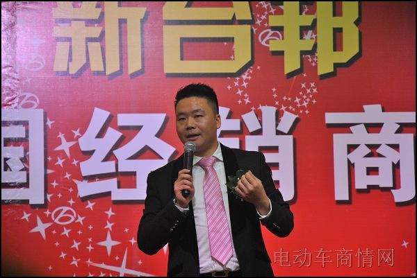 会议首先由台邦电动车总经理陈总发表致辞,陈总站在舞台上首先感谢了到场的各位嘉宾和领导,感谢了各位供应商的支持,最后尤其感谢几年来各位台邦的员工和经销商能够和台邦一起风雨同舟共同成长。陈总说,从成立至今的四年来,台邦所取得的进步是令人激动的,在同行的眼中台邦的崛起就是奇迹。而在未来,台邦依然会坚持自己的道路不会动摇,让理想和激情、让奇迹和成功在所有台邦人的手中继续打造中国华南电动车第一品牌。