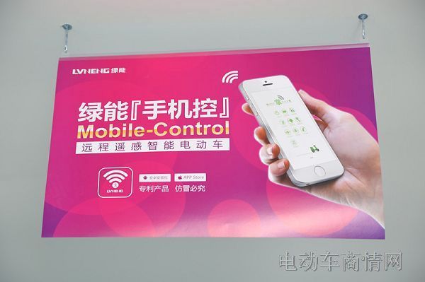 手机控智能专区使用了挂壁式广告机、手机控吊旗、橱窗大海报、水晶牌、荣誉证书、布绢丝布套画等物料。展示了绿能历年获得的专利证书并呈现了手机控智能电动车以及2014年重大公关事件——重走丝绸之路宣传画面。不仅从感官还是体验上,让消费者真正了解绿能,认知绿能。