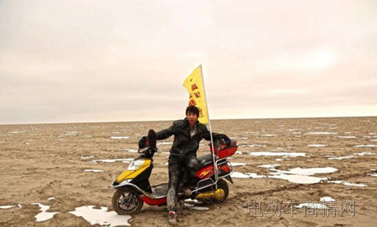 罗布泊的路面很像是泛起小波浪后按了暂停健的海平面,不过这里不是水面,而是盐翘的地面,起伏连绵数百里硬梆梆的路面对于任何车子的性能都是一大挑战。待我们追上骑手波波的时候已经是半小时后了,他在我们前方就像“原地漂移“似地一路”滑着“走,雪水软化了盐翘地的表层,车子在上面跑,颠簸的同时还会不断打滑。看到波波身上的泥印就知道,我们追上来之前他没少摔倒,但是他始终坚持一路向前。而另一个骑手——蒋秋林,作为2014年环塔拉力赛的冠军,果然实力非凡。我们跟在蒋大哥后面一路颠簸,以蜗牛爬的速度行驶,蒋大哥却如策马奔腾在大草原上一般,盐翘路面的起伏被他完全无视了,一转眼的功夫便将我们甩开数公里远。