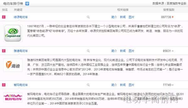 打开上网浏览器,进入百度首页,输入“电动车排行榜”,我们就能清晰看见排名信息,并且看出网民的搜索数据,截至到小编目前的统计,绿源电动车百度搜索指数高达“887736“,位居电动车行业排行榜第一名。这么高的网民搜索量,绿源电动车这节奏太强悍了,根本hold不住了!疯了……. 网友们对绿源电动车的高度关注,恰好证明着绿源产品深受消费者的信赖。