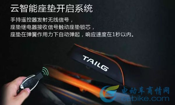 手持遥控器发射无线信号,座垫继电器接收信号触动座垫锁芯,座垫在弹簧作用力下自动弹起,不用费力插钥匙,不怕天黑找锁孔。