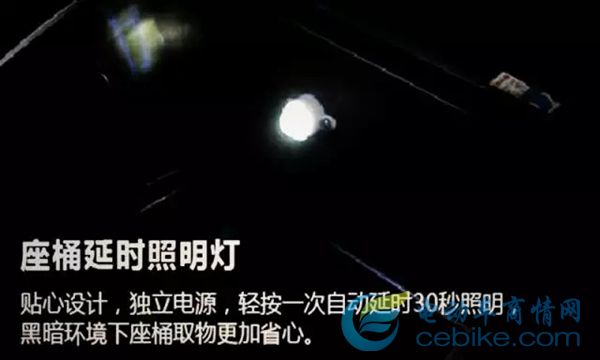 座桶内置LED延时照明灯,当座垫开启后轻按一下照明灯,常亮30秒后自动熄灭,方便夜晚座桶取物。